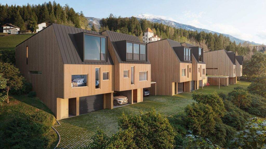 Die Häuser verfügen über eine Garage sowie einen zusätzlichen, überdachten Stellplatz. Der private Gartenbereich liegt sonnenseitig, im Süden und bietet einen unverwechselbaren Schlossblick, sowie auf den Patscherkofel.