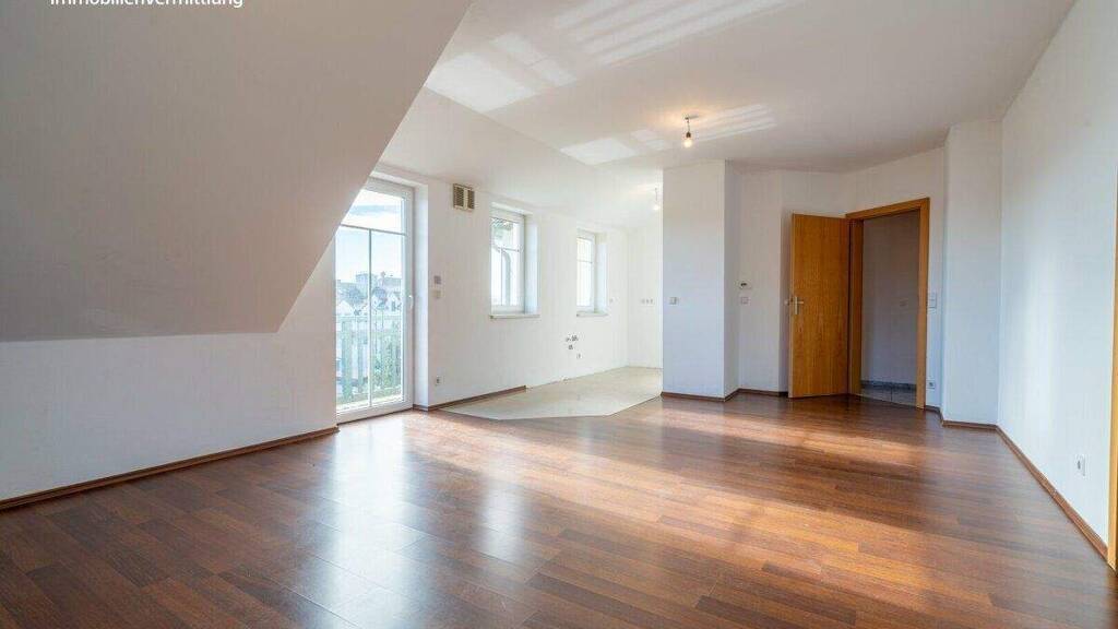 Die Wohnung befindet sich im Dachgeschoss (2. Stock) und überzeugt durch eine durchdachte Raumaufteilung sowie helle, freundliche Wohnbereiche. Das großzügige Wohnzimmer mit Kochnische bildet das Herzstück der Wohnung und bietet direkten Zugang zum Balkon - ideal, um den Blick ins Grüne zu genießen und entspannte Stunden im Freien zu verbringen. Das Badezimmer bietet ein Handwaschbecken, eine Badewanne mit Duschwand, einen Anschluss für Ihre Waschmaschine sowie ein Dachfenster für angenehme, ungestörte Momente.