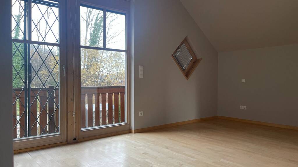 Auf zwei Ebenen bietet das Haus eine durchdachte Raumaufteilung: Im Erdgeschoss erwartet Sie ein großzügiger Wohn- und Essbereich mit Blick ins Grüne und Zugang zum weitläufigen Garten. Große Fensterflächen holen die umliegende Natur - Wald, Wiesen und den Mattsee - direkt ins Haus und schaffen ein lichtdurchflutetes Wohnambiente.