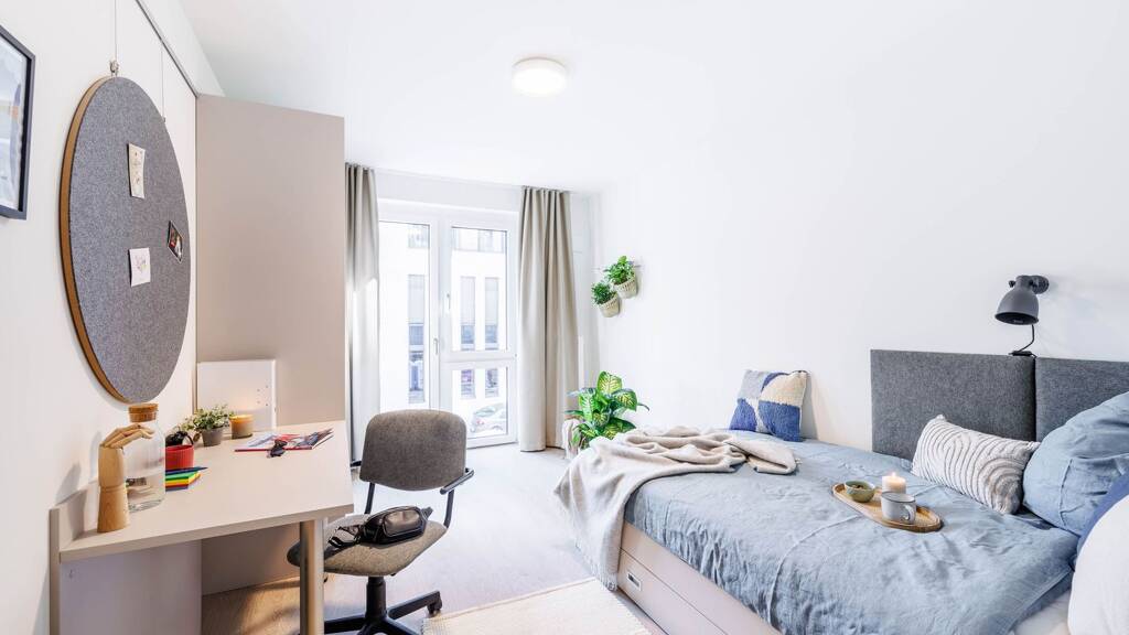 • Gemeinschaftsräume: Rezeptionslounge, Gemeinschaftsküche, Lernraum, Gaming Bereich, Dachterrasse, Innenhof, TV-Ecke, Fahrradkeller und Waschsalon