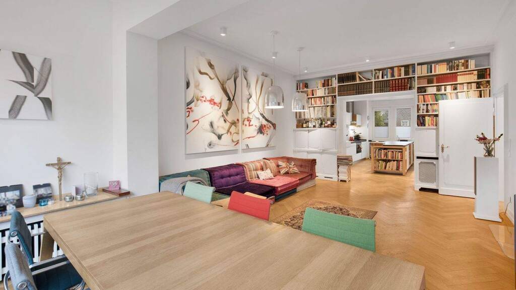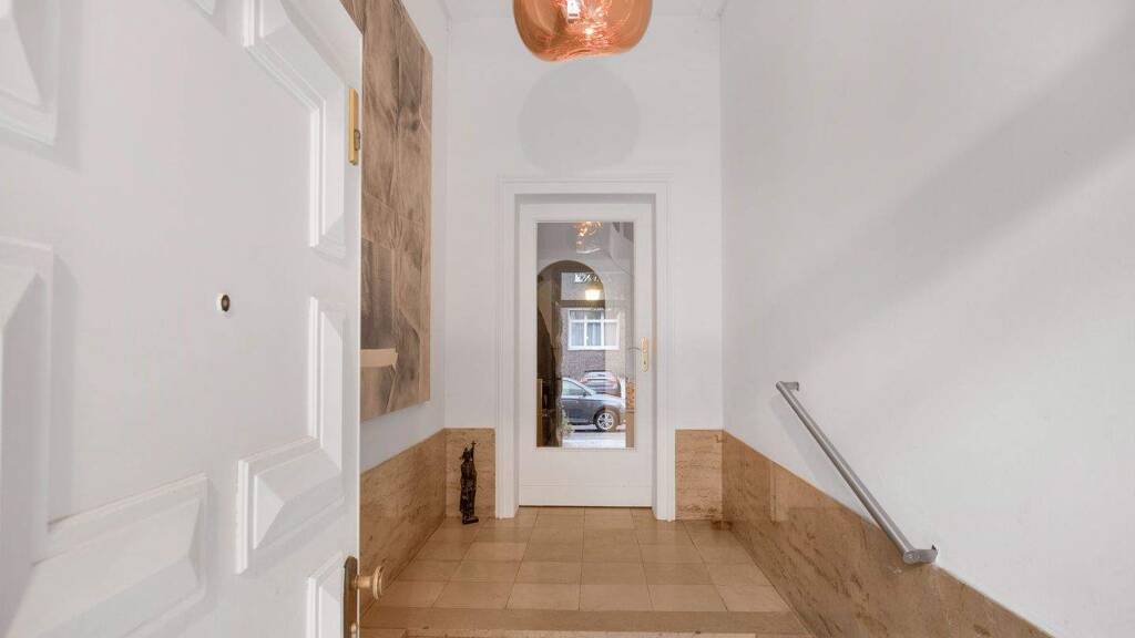 Das Haus aus dem Jahr 1930, das zwischen 2015 bis 2016 mit viele Liebe zum Detail renoviert wurde, gibt von außen nicht preis, welch großartige Wohnqualität es seinen Bewohnern bietet. Über insgesamt fünf Geschosse verteilen sich zwölf Zimmer und vier Bäder. Ein rund 500 Quadratmeter großer Garten in Süd-West-Ausrichtung ist von einer überdachten Terrasse erreichbar und liegt in einem weitläufigen Innenhof-Areal. Über eine repräsentatives Entre gelangt man in das offen gestaltetet Erdgeschoss, das Treffpunkt für Familie und Gäste ist. Es bietet Platz für eine Küche mit Kochinsel und einen großen Esstisch, ebenso wie ein Wohnzimmer mit Kamin und Lesezimmer. Von hier aus gelangt man über die überdachte Terrasse zum Garten. Das erste Obergeschoss bietet zwei Schlafzimmer, ein Ankleidezimmer und ein Kino-Zimmer. Das Hauptschlafzimmer, das über einen eigenen Balkon mit Blick zum Garten verfügt, ist en-suite mit einem Dusch-Bad verbunden, ebenso wie mit dem Arbeitszimmer. Das Reich der Kinder befindet sich zweiten Obergeschoss. Insgesamt verfügt es über drei Schlafzimmer, wovon eines mit en-suite Bad und eigenem Flur organisiert ist, ideal als Einheit für ein Au-pair, Kindermädchen oder die Oma. Ein weiteres Zimmer verfügt über eine Treppe in den Spitzboden, in dem nochmal zusätzlich viel Platz ist für Ideen und Erweiterungen, eine ideale Ausbaureserve.