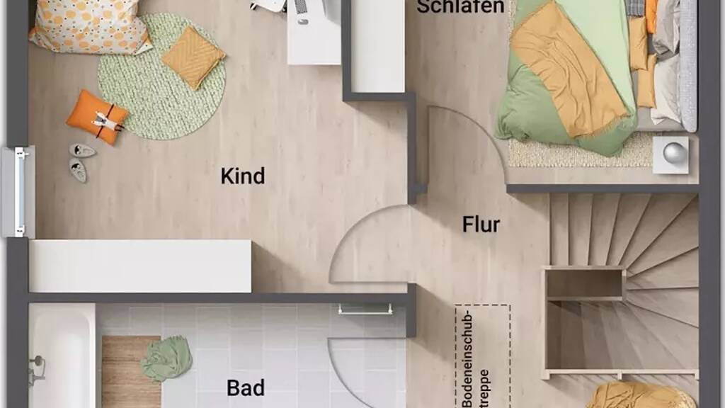 Im Erdgeschoss genießen die Bewohner ihren Alltag – vom morgendlichen Frühstück in der Küche oder Esszimmer bis zum gemütlichen Abend im Wohnzimmer. Im Obergeschoss bietet das Kinderzimmer viel Raum zur Entfaltung. Schlaf- und Badezimmer laden zum Abschalten und Entspannen ein. Besonderes Highlight – die lichtdurchflutete Galerie.