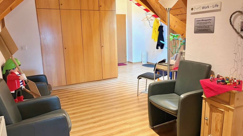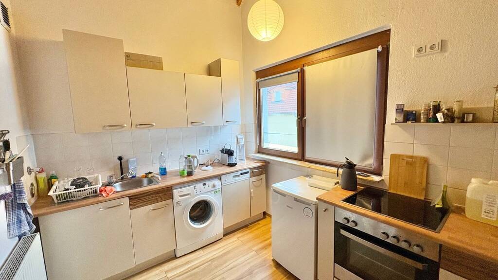 Kleine Büro-/Praxiseinheit in verkehrsgünstiger Lage: Kurzfristig stehen ca. 95 m² Büro-/Praxisflächen im Dachgeschoss des Wohn- und Geschäftshauses zur Anmeitung zur Verfügung. Die Einheit ist aufgeteilt in drei Büro-/Behandlungsräume sowie eine Teeküche, ein Duschbad sowie ein separates WC. Der Flur kann als Wartebereich genutzt werden. Die Flächen sind mit einem PVC-Bodenbelag in Holzoptik ausgestattet. Die Einrichtung der Teeküche kann gegen eine geringe Ablöse übernommen werden.
