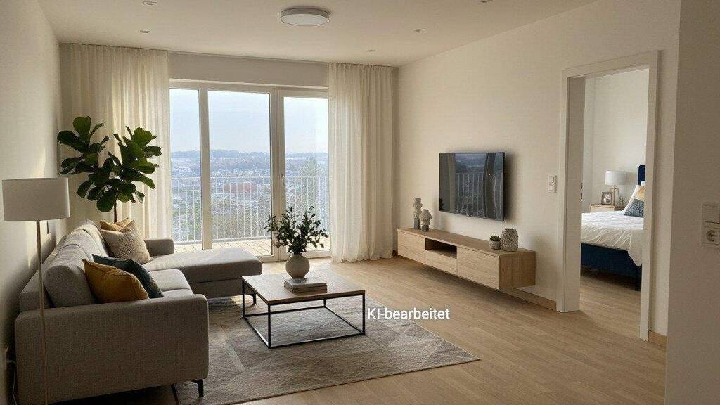 Die rund 65,5 m² Wohnfläche präsentieren sich mit einer Großzügigkeit, die man auf dem Papier kaum erahnt. Der Wohn- und Essbereich ist das Herzstück dieser Wohnung. Mit mehr als 35 m² wirkt er repräsentativ und gleichzeitig gemütlich, ein Raum, der sich sowohl für entspannte Abende als auch für Gäste perfekt eignet. Große Fensterflächen holen das Licht tief in den Raum, und der direkte Zugang zur Loggia macht diesen Wohnbereich zu einem Ort, der sich im Sommer bis ins Freie erweitert.