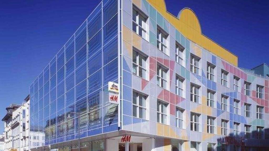 Das außergewöhnliche Gebäude besteht aus zwei Unter- und vier Obergeschossen und trägt die Handschrift des berühmten Mailänder Architekten Alessandro Mendini. Im Erdgeschoss und ersten Obergeschoss belegen der Textilfilialist H & M und der Drogeriemarkt dm Ladenflächen. Darüber befinden sich Büroeinheiten und Praxisflächen. Die Obergeschosse des Gebäudes sind an der Nordseite etwas zurückgesetzt, um eine gute Belichtung zu gewährleisten. Im Untergeschoss 1 befinden sich außer den nötigen Funktionsräumen noch Lagerflächen, im Untergeschoss 2 gibt es eine Tiefgarage mit 42 Stellplätzen.