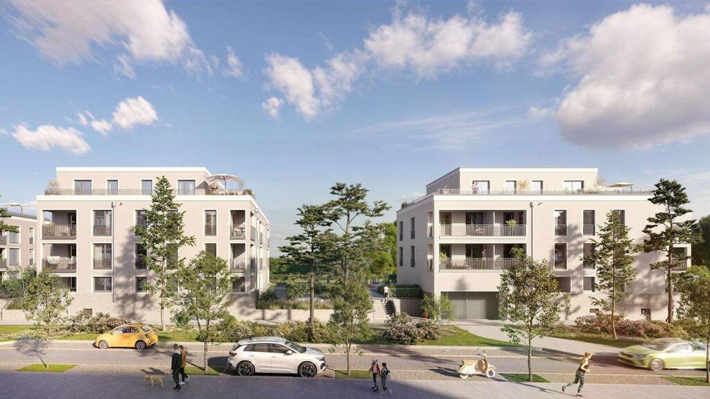 Inmitten eines großzügigen Grünzugs entstehen sechs moderne Wohngebäude, die insgesamt 148 hochwertige Eigentumswohnungen bieten. Die klare Linienführung, zeitgemäße Architektur und eine durchdachte Planung verleihen dem Projekt eine besondere Note. Große, lichtdurchflutete Fensterflächen schaffen eine helle und freundliche Atmosphäre. Abhängig von der Lage und Ausrichtung verfügen die Wohnungen über Terrassen, Balkone, Loggien oder großzügige Dachterrassen. Mit einer Wohnfläche von ca. 35 bis ca. 112 m² und Grundrissen von 1 bis 4 Zimmern ist für jeden Bedarf und Lebensstil etwas dabei - ob für Singles, Paare, Familien, Berufseinsteiger oder Ruheständler.