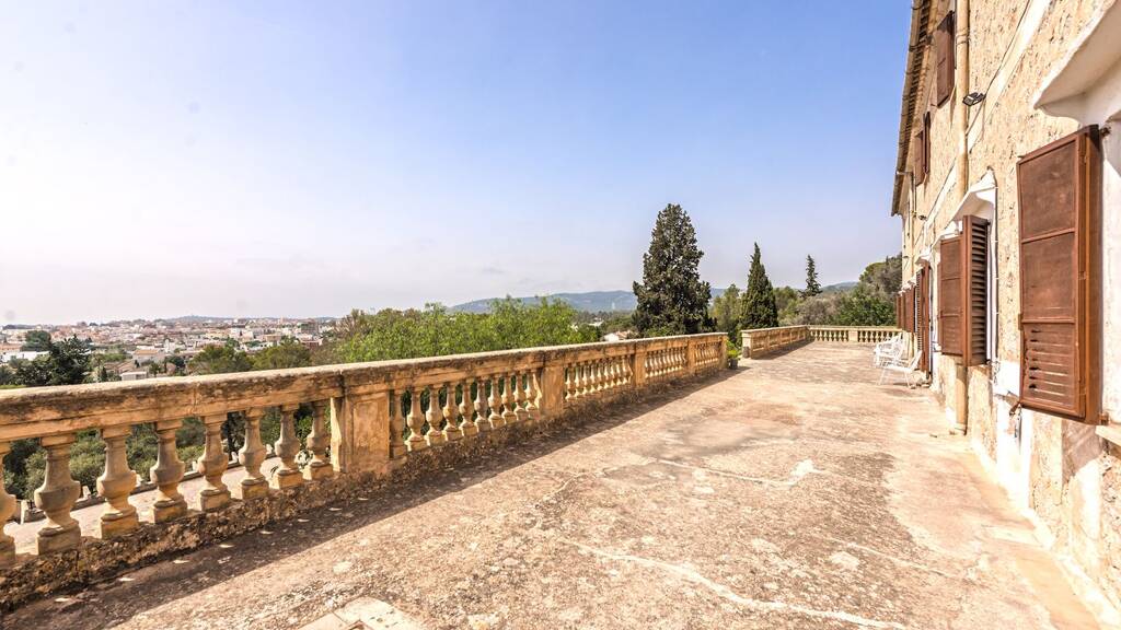 Welch schönen Ort wählte der betreffende Patrizier, als er ca. 1880 diese Sommerresidenz errichtete: am Fuße der Berge im Norden Palmas, keine 6 km vom Stadtzentrum, mit Blick über ganz Palma inkl. Kathedrale und Castell Bellver sowie große Teile der Bucht von Palma bis zur Cabrera-Insel. Es war damals ein magischer, ruhiger Ort, und das ist er auch heute noch. Einkaufsmöglichkeiten, Bushaltestelle, Schulen und die Golfplätze von Son Vida sind nah. Das Patrizierhaus steht auf einem großen Grundstück von ca. 43.000m². Es muss renoviert werden. Von der Größe her ist es sowohl als Privatresidenz als auch als Hotel geeignet. Es hat eine repräsentative Zufahrt durch einen parkähnlichen Garten. Vor dem Haupthaus ist eine uneinsehbare Panoramablick-Terrasse (ca. 110m²) mit Südorientierung.