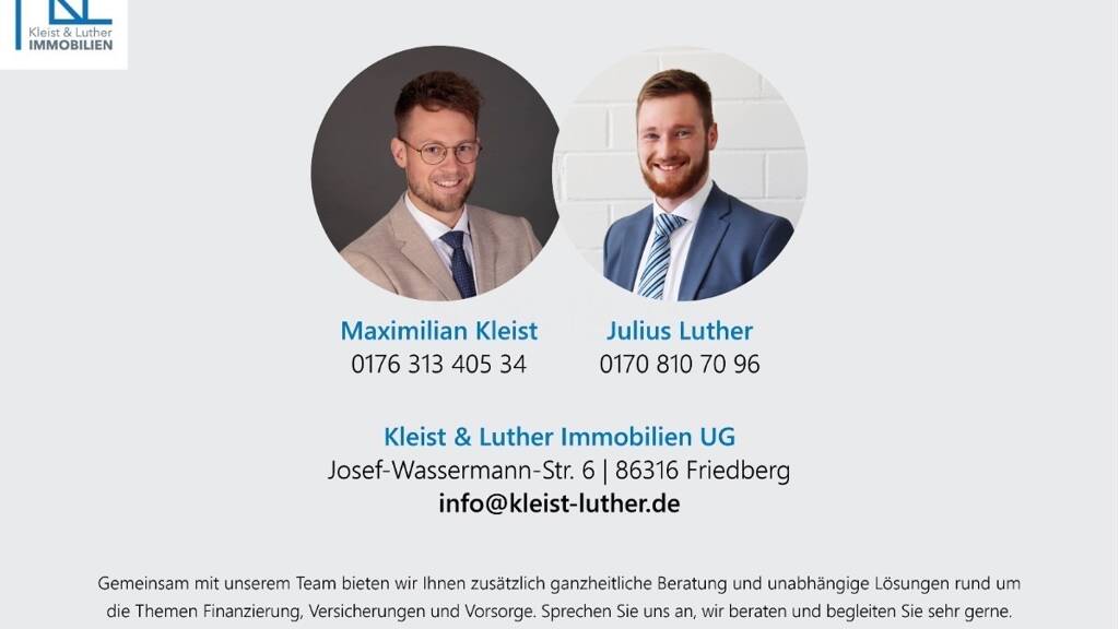 Lage Die Wohnung befindet sich mitten in der historischen Altstadt von Aichach - einer charmanten Kleinstadt mit hoher Lebensqualität. . Sämtliche Einkaufsmöglichkeiten, Cafés, Restaurants und Bars sind fußläufig erreichbar . Ärzte, Apotheken sowie der Wochenmarkt befinden sich in direkter Umgebung . Gute Anbindung durch Bahnanschluss und Busverbindungen . Ca. 15 Minuten zur A8 (Anschlussstelle Dasing) . Ca. 15 Minuten nach Augsburg, ca. 45 Minuten nach München . Schulen, Kindergärten und Freizeitangebote in unmittelbarer Nähe . Naherholung durch Wälder und Naturschutzgebiete direkt vor der Haustür