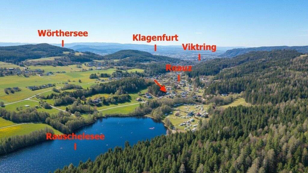 Die Liegenschaft liegt im Ortsteil Reauz in 9074 Keutschach am See (Klagenfurt-Land) - einer begehrten Wohnlage im Keutschacher Seental / Vier-Seen-Tal auf der Südseite des Wörthersees. Hier trifft Ruhelage im Grünen auf ein echtes Lifestyle-Asset: In der direkten Umgebung befinden sich mehrere Badeseen und Naherholungsräume (u. a. Rauschelesee, Keutschacher See), ergänzt durch ein starkes Freizeitangebot mit Wandern, Radfahren, Baden sowie dem Ausflugsziel Pyramidenkogel.