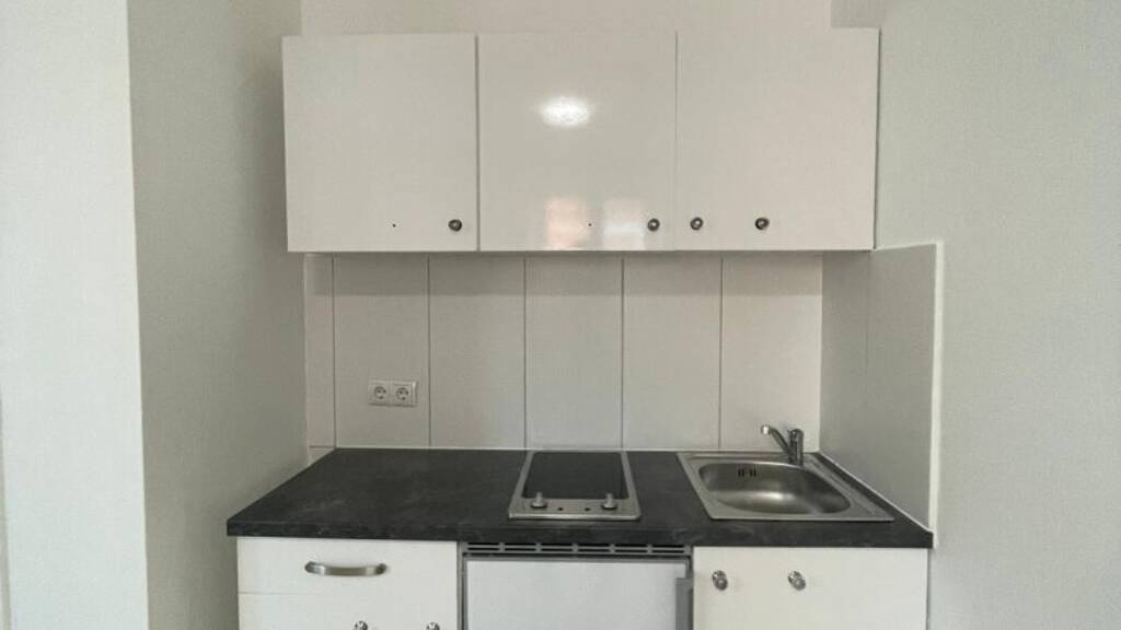 Die Mietwohnung teilt sich wie folgt auf: Vorraum, möblierte Küche mit Wohn-/Ess-/Schlafzimmer, Badezimmer mit Fenster, Dusche und WC.