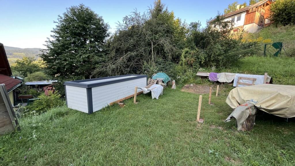 Die Grundfläche ist aktuell überwiegend bewachsen und verbuscht, kann jedoch individuell gestaltet und bebaut (kein Bebauungsplan!) werden.