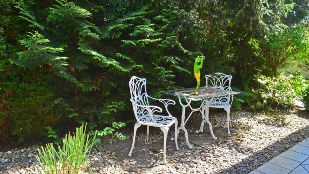 Zwischen Wohnbereich und Garten öffnet sich ein lichtdurchfluteter Wintergarten, der den Übergang zur Terrasse in charmanter Weise inszeniert. Hier lässt sich der Wechsel der Jahreszeiten hautnah und entspannt erleben.