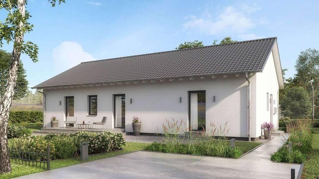 Das Comfort Style 11.02 S ist ein Musterbeispiel für eine gelungene Verbindung von Individualität und Funktionalität beim Wohnen. Das Satteldach mit seinen klaren Linien und die bodentiefen Verglasungen im Wohnbereich verleihen dem Bungalow ein attraktives Äußeres, das im Innern mit einem flexiblen, wunsch- und bedarfsgerecht angelegten Grundriss korrespondiert: Auf einer Nettogrundfläche von 118 m² sind der durchdacht und funktional geräumige Wohn-Ess-Bereich mit Gartenanbindung, Küche, Eltern- und Kinderzimmer sowie nützliche Stauraumlösungen realisiert. Serienmäßig höhere Wände unterstreichen das großzügige, individuelle Wohlfühlwohnen und geben kreativen Baufamilien auch auf einer Wohnebene reichlich Raum für deine Ideen. Top-Wohnkonzept für jeden Geldbeutel!