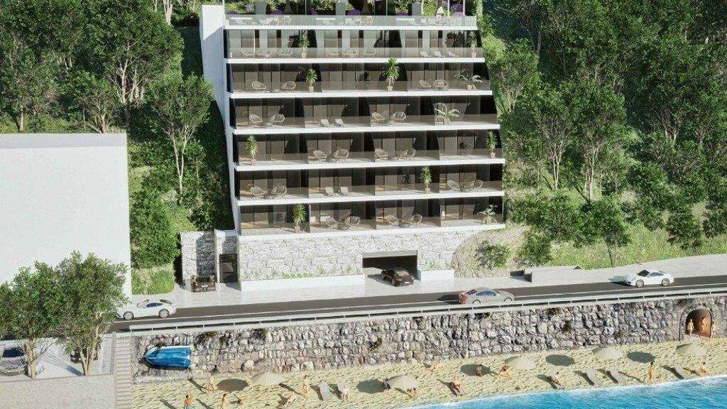 Die Wohnung umfasst einen Flur, ein Schlafzimmer, ein geräumiges Ankleidezimmer, ein Badezimmer, ein Wohnzimmer mit Kochnische und Essbereich sowie eine große Loggia (12,31 m²), die zum Entspannen mit Meerblick einlädt.