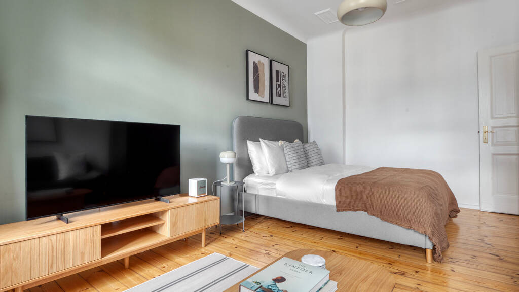 Mit maßgeschneiderten Details, moderner Einrichtung und einer voll ausgestatteten Küche sorgfältig konzipiert, wirst du in dieser Blueground-Wohnung heimisch. Ob du dir einen gemütlichen Tag in deinem gemütlich Wohnzimmer machst und das neueste und beste Entertainmentprogramm über den Smart-TV oder hochwertigen drahtlosen Lautsprecher streamst, oder dir etwas wohlverdiente Ruhe auf der erstklassigen Matratze samt du wirst dich in alles, was diese Neukölln Wohnung zu bieten hat, verlieben. Diese Wohnung verfügt über eine eigene Waschmaschine mit Trockner.