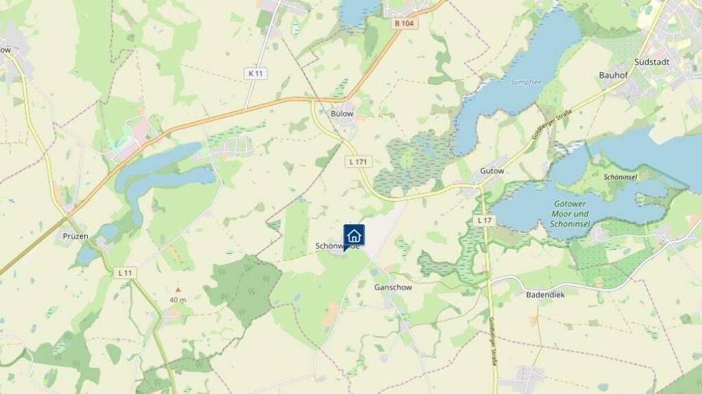 Das Wohnhaus steht in innerörtlicher Lage auf einem Eckgrundstück in dem kleinen Dorf Schönwolde, einem Ortsteil der Gemeinde Gutow im Landkreis Rostock, welche im Amt Güstrow Land in Güstrow verwaltet wird. Die Gemeinde Gutow liegt im Nordbereich der Mecklenburgischen Seenplatte, grenzt an das südwestliche Stadtgebiet von Güstrow und liegt zwischen drei Seen (Parumer See, Sumpfsee und Inselsee). Das Gestüt Ganschow ist keine 2 km entfernt. Die Barlachstadt Güstrow erreicht man nach ca. 10 km. Die leicht hügelige Umgebung lädt zu vielfältigen Freizeitaktivitäten, wie Wanderungen, Fahrrad fahren sowie Ausflügen mit dem Pferd ein. In der Kreisstadt Güstrow findet man umfangreiche kulturelle Angebote sowie eine sehr gute Verkehrs- und Infrastruktur.