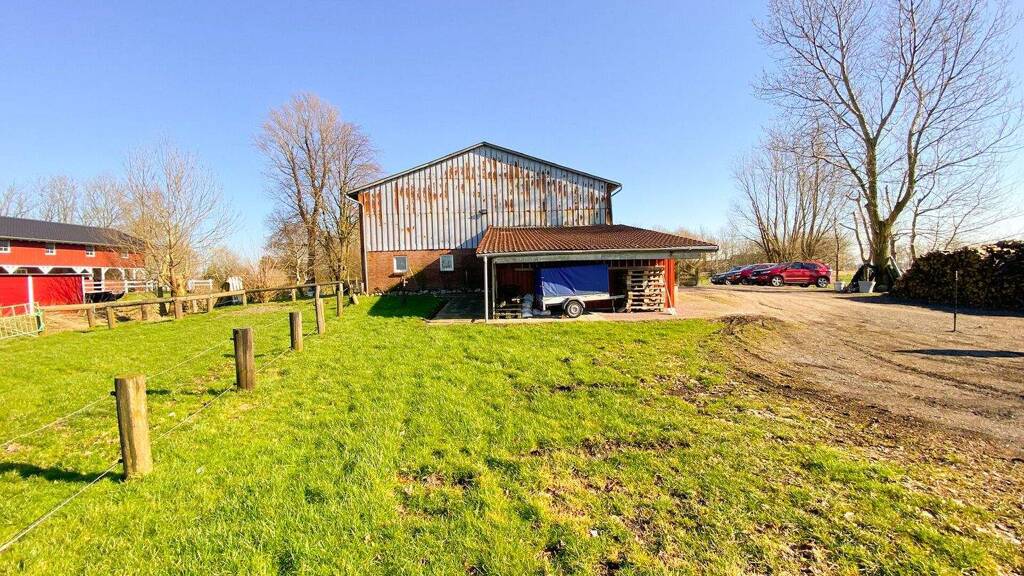Die Lage ist geprägt von weitläufigen Feldflächen mit Blick in die offene Landschaft, womit eine ruhige, naturnahe Atmosphäre gesichert ist. Wander- und Spazierwege sind leicht erreichbar, ebenso wie Reitmöglichkeiten - die ländliche Struktur und umliegende Weiden machen das Objekt besonders attraktiv für Tierhaltung und Pferdehaltung. Die ruhig gelegene Lage lädt ein für ausgiebige Fahrradtouren entlang der Flusslandschandschaft der "Eider-Treene-Sorge" Region.
