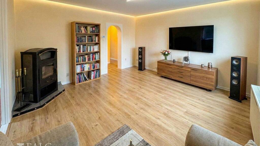 + Kaminofen im Wohnzimmer + indirekte, umlaufende Lichtleiste mit Fernbedienung + Balkon mit Blick in die Grünanlage + praktischer Einbauschrank im Flur + Gegensprechanlage im Flur
