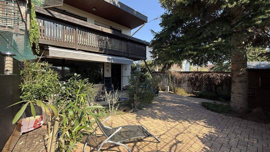 Die sonnige Terrasse, der großzügige Balkon mit schöner Aussicht sowie der gepflegte Garten laden zum Entspannen ein. Eine Garage und ein Keller bieten zusätzlichen Stauraum.