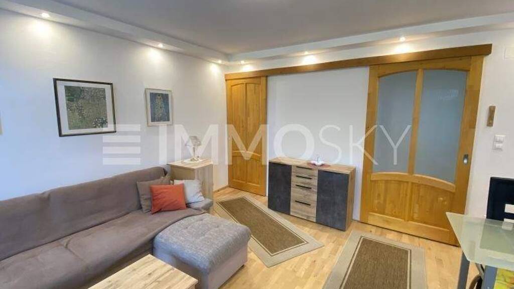 + Moderne Küche mit kleinem Essplatz + Wohnzimmer mit Esstisch + Badezimmer, WC extra + 2 Schlafzimmer + Eingangsbereich