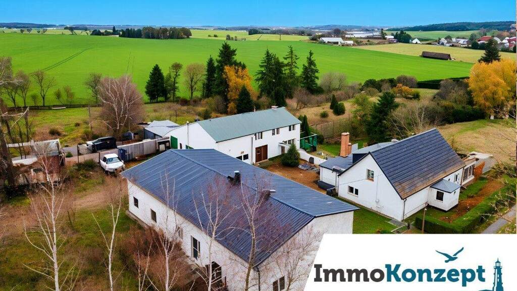 Auf einem großzügigen Grundstück mit ca. 6.620 m², umgeben von weiten Feldern und mit großem Abstand zu den Nachbargrundstücken, befinden sich insgesamt drei separate Wohnhäuser mit umfangreichen Nutz- und Ausbaureserven.