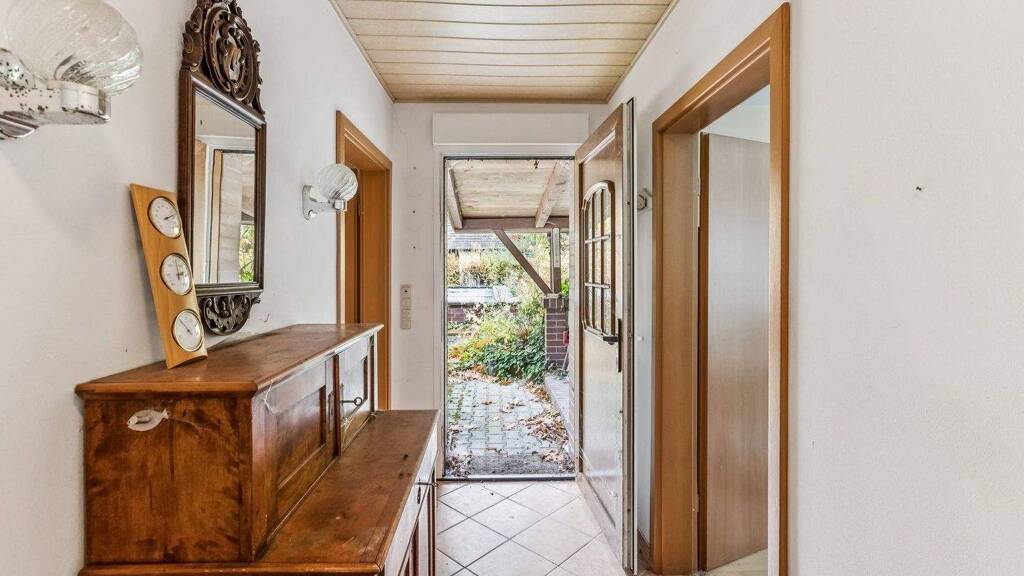 Das Haus teilt sich in Erdgeschoss und Spitzboden auf und befindet sich auf einem ca. 2.675 m² großen und ruhigen Gartengrundstück.