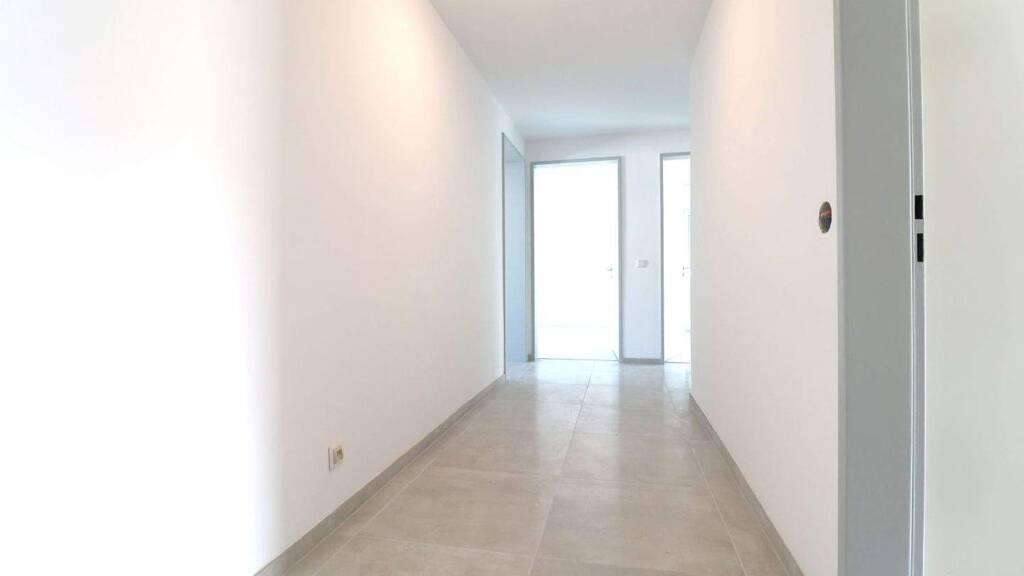Der zentrale Flur verbindet alle Räume miteinander. Direkt rechts vom Eingang liegt die helle Küche mit Zugang zum Balkon in Südost-Ausrichtung. Die moderne Einbauküche ist im Kaufpreis enthalten.