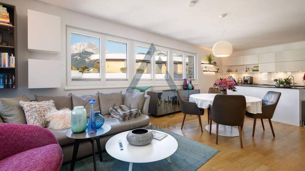 Diese Wohnung befindet sich in sonniger Zentrumslage von St. Johann in Tirol und bietet einen Ausblick auf den Wilden Kaiser und das Kitzbüheler Horn.