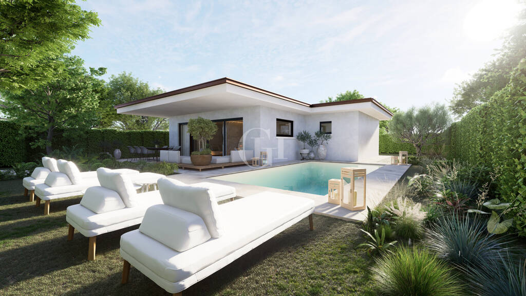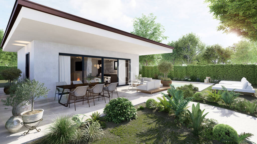 Der private Pool wird zur Bühne für Spaß in der Sonne, während die Veranda der ideale Ort ist, um Freunde zu unterhalten. Garage, Waschküche und zusätzliche Räume machen Ihre moderne Villa zu einem Treibhaus voller Stil und Komfort.