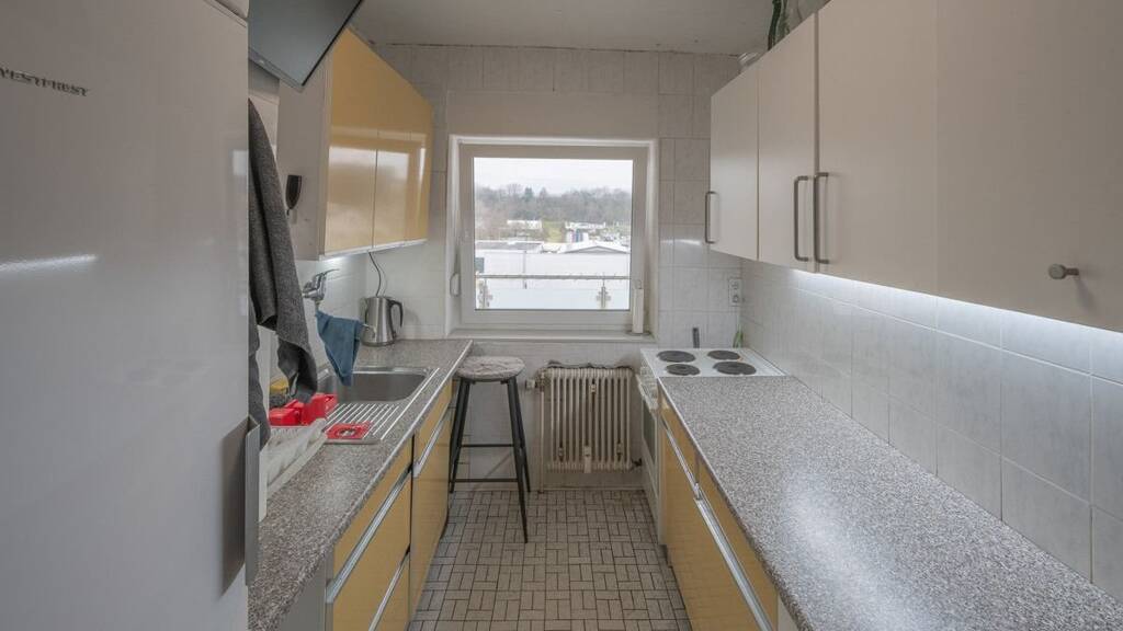 Zur Wohnung gehört außerdem ein Stellplatz vor dem Haus sowie ein Kellerraum im Untergeschoss des Mehrfamilienhauses.
