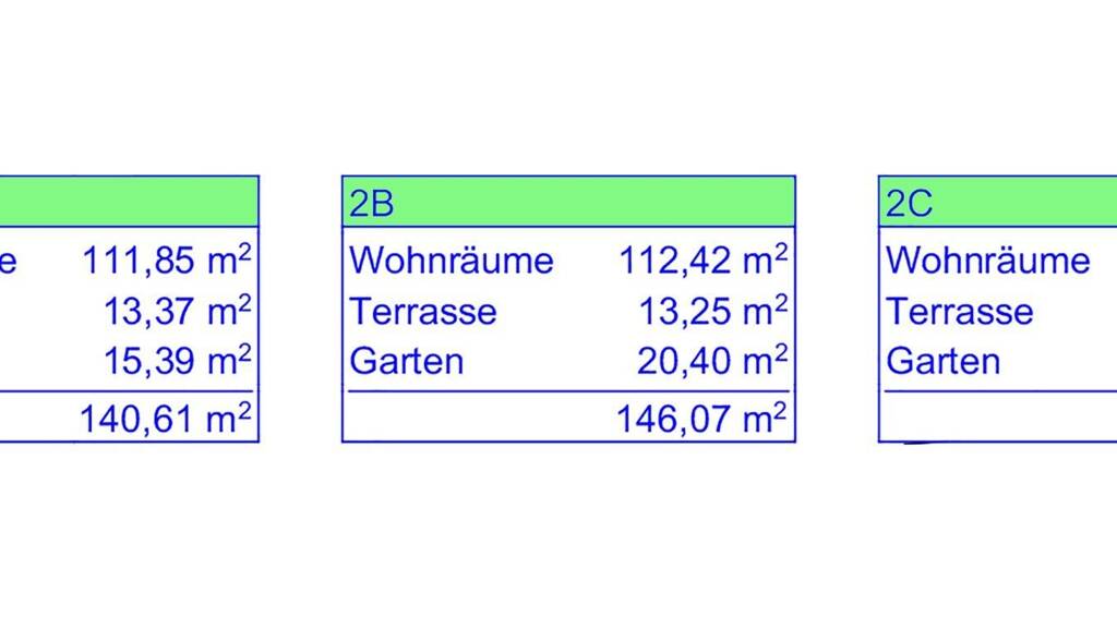 Die Einheiten haben Wohnflächen von 99 m² bis 112 m² und Gesamtflächen zwischen 123 m² und 241 m², einschließlich Terrassen, Gärten und jeweils zwei im Kaufpreis inbegriffenen PKW-Stellplätzen pro Haus.