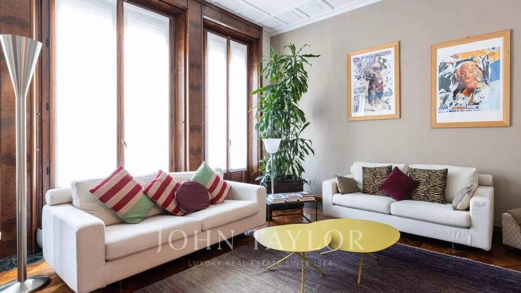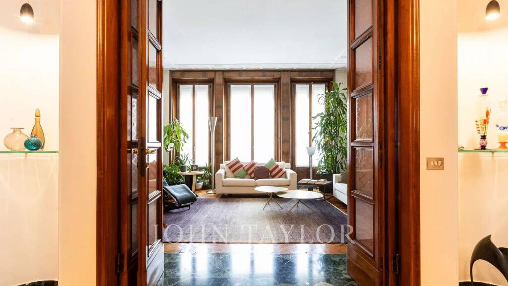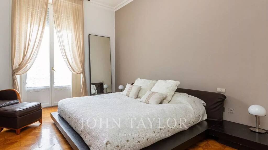 In an elegant period building internal context equipped with concierge service, elegant high floor apartment, very bright and quiet, of great charm, splendid and precious original finishes with high ceilings, very well laid out, composed of: two entrances and large entrance hall, large eat-in kitchen, triple living room, dining room, 4 bedrooms, storage closets and 2 bathrooms. 5 balconies. Attic and large cellar. Possibility of garage.