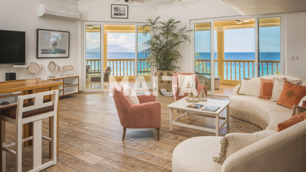 Der Balkon und die Sonnendachterrasse bieten einen sehr beeindruckenden Meerblick, Blick auf die Berge von Puerto Plata und einen Blick auf den Pool und die wunderschöne Anlage. Das Erdgeschoss bietet 3 Schlafzimmer und 3 Badezimmer en Suite. Zwei Schlafzimmer haben Zugang zum Balkon.