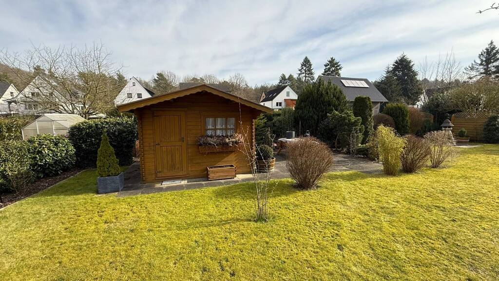 Das Grundstück bietet einen Vorgarten sowie einen großzügigen, liebevoll gestalteten, rückwärtigen Garten. Neben einer weitläufigen Rasenfläche und zahlreichen Ziergewächsen finden Sie auf der dem Gartenhaus angrenzenden Terrasse ein ansprechendes, sonniges Plätzchen.