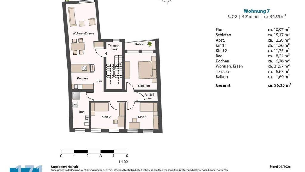 4 Zimmer  •  96,4 m²  •  3. Geschoss