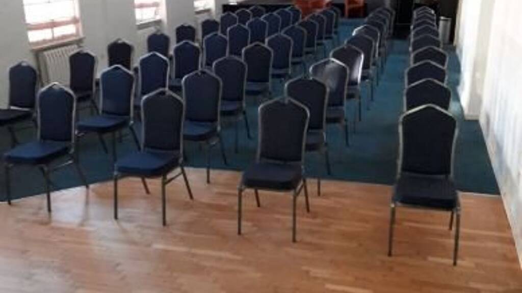 Versammlungsbestuhlung in der Kleinkunstbühne für ca. 94 Personen