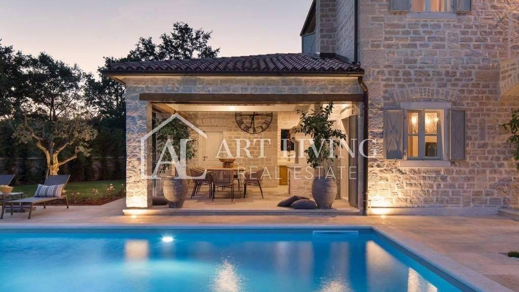 Zum Verkauf steht eine Designer-möblierte Steinvilla mit Pool in Zentralistrien, 23 km von Porec und 26 km vom malerischen Rovinj entfernt. Die Villa ist luxuriös eingerichtet und mit rustikalen Möbeln ausgestattet. Die Villa verfügt über einen hohen Komfort und vom Balkon im ersten Stock hat man einen wunderschönen Panoramablick auf das Meer.