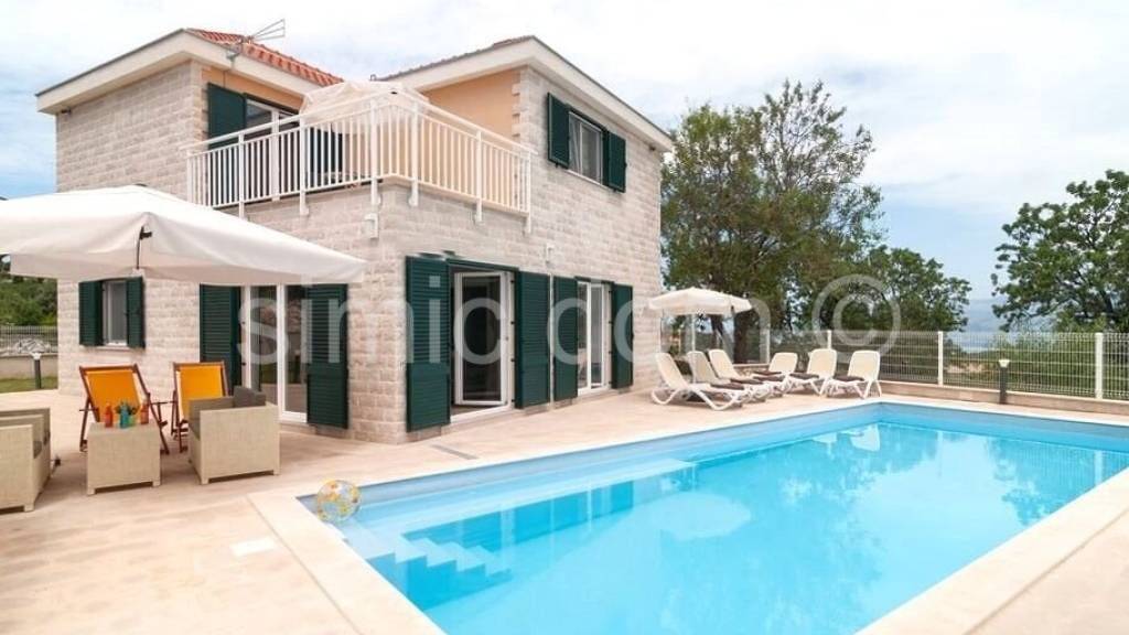 Wir vermitteln beim Verkauf eine charmante Villa im klassischen dalmatinischen Stil auf der Insel Brac. Sie erstreckt sich über das Erdgeschoss und den ersten Stock und verfügt über eine Wohnfläche von 135 m. Das Erdgeschoss besteht aus einem Schlafzimmer mit Bad, WC, Küche, Esszimmer und Wohnzimmer. Vom Wohnzimmer aus gelangt man auf die gepflasterten und großzügigen Terrassen, die das Haus umgeben und einen Pool sowie Bereiche zum Sonnenbaden, Entspannen und für geselliges Beisammensein bieten. Im ersten Stock befinden sich zwei Schlafzimmer, zwei Badezimmer und zwei Terrassen. Für den Bau und die Außengestaltung der Villa wurde Brac-Stein verwendet. Auf dem Grundstück befinden sich außerdem zwei überdachte Parkplätze. Der Innenhof ist mit Rasenflächen und traditionellen mediterranen Pflanzen gestaltet.