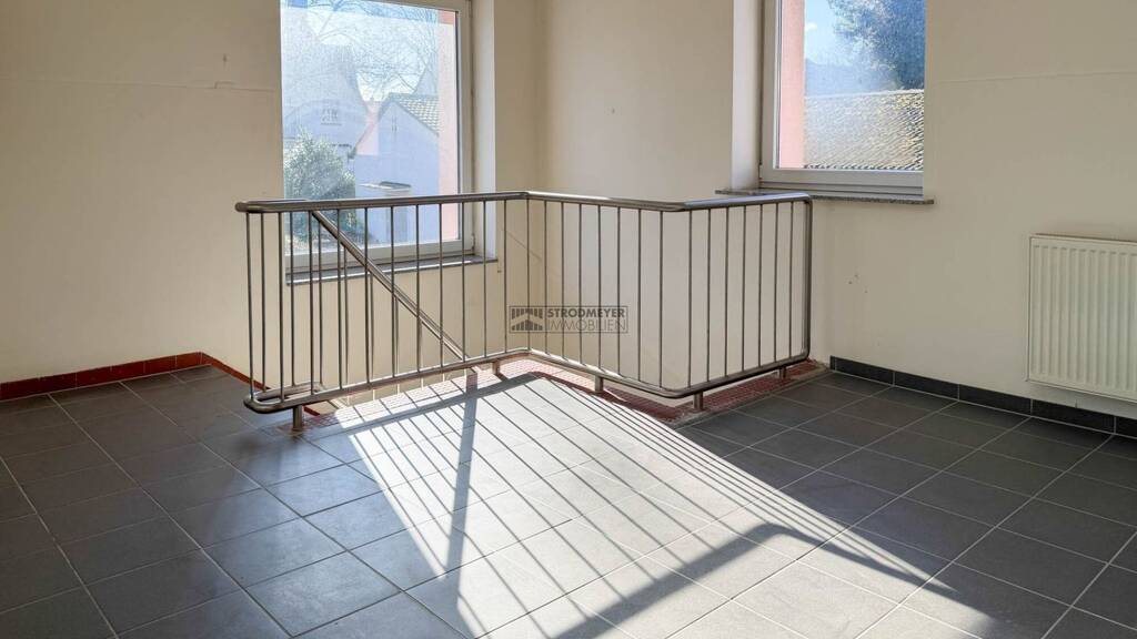 Bei dem angebotenen Objekt handelt es sich um ein denkmalgeschütztes, historisches Gebäude, das ehemalige Stadtbad Boele, welches im Jahr 2011 umfassend saniert und hochwertig zur Nutzung als Bäckerei umgebaut wurde. Die Immobilie verbindet eindrucksvolle historische Architektur mit moderner, funktionaler Gewerbenutzung und bietet vielseitige Nutzungsmöglichkeiten für Produktion, Lager, Büro, Versand sowie ergänzende Gewerbe- oder optional auch Wohneinheiten.