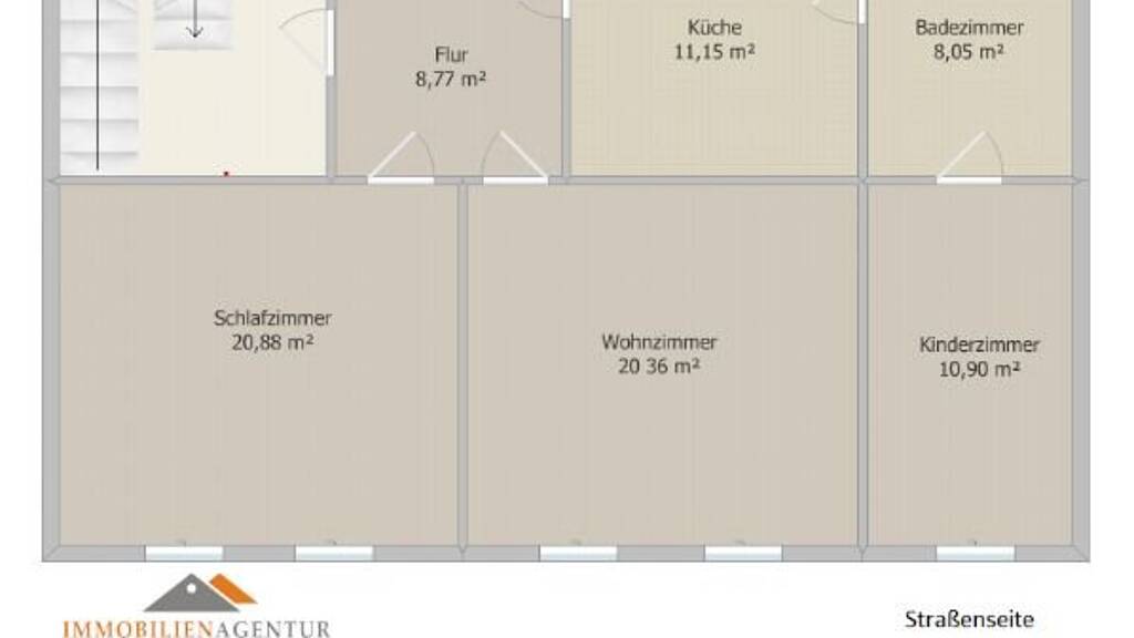 Mit Rücksicht auf die Privatsphäre der Mieter veröffentlichen wir keine Innenraumfotos der Wohnung im OG rechts. Die im Grundriss gezeigte Aufteilung dieser Wohnung kann abweichen.