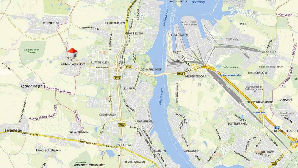 Kindergarten, Schulen sowie Einkaufsmöglichkeiten für den täglichen Bedarf sind in wenigen Fahrminuten erreichbar. Bushaltestellen bzw. der Anschluss an den ÖPNV sorgen für eine gute Anbindung in die Rostocker Innenstadt. Auch die Ostsee und die umliegenden Naherholungsgebiete sind schnell erreichbar und bieten eine hohe Lebensqualität in der Freizeit.