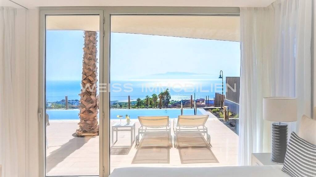 Große Terrasse, Pool und Meerblick nach La Gomera - Elegante Villa im Luxusresort von Guía de Isora