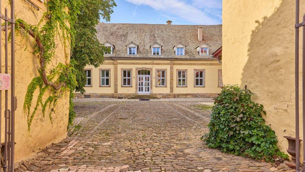 Um 1724 ließ der Freiherr von Hunolstein in Nieder-Wiesen dieses imposante Wasserschloss errichten, das ursprünglich von einem Wassergraben umgeben war. Noch heute durchzieht ein malerischer Bachlauf den romantischen Schlossgarten und unterstreicht den historischen Charme des Anwesens. In den Folgejahren wurden Nebengebäude, die Gartenanlage sowie in den 1990er Jahren die Reitanlage ergänzt. Das gesamte Ensemble, einschließlich des Schlosshofs, steht unter Denkmalschutz. Das Schloss – mit seinen 560 m² Wohnfläche – selbst wurde 2001 aufwendig kernsaniert, seither modernisiert und verbindet historischen Charakter mit moderner Luxusausstattung. Hochwertige Materialien, Stuckdecken, ein Terrazzomosaikboden im Flur, Granit und Echtholzparkett prägen das Interieur. Die Küche der Marke Poggenpohl ist mit professionellem Gaggenau-Equipment ausgestattet, während das Master-Badezimmer Designer-Elemente von Philippe Starck, freistehende Badewanne und Fußbodenheizung bietet. Ein Kamin im Wohnbereich, eine Öl-Zentralheizung, Videoüberwachung und großzügige Parkanlagen mit romantischen Sitzecken runden das exklusive Wohngefühl ab. Der im Innenhof gelegene Festsaal mit rund 115 m² Fläche, Fußbodenheizung und indirekter Beleuchtung eignet sich ideal für Hochzeiten oder besondere Events und verfügt über eine Ausbaureserve im Dach. Ergänzt wird das Anwesen durch ein Gästehaus mit sechs hochwertig eingerichteten Apartments auf ca. 200 m² Wohnfläche, jeweils mit eigener Küche und Bad, zwei davon mit Terrassen und Blick auf den Schlossgarten. Die Reitanlage umfasst eine 20 x 40 m große Reithalle, einen 20 x 60 m großen Dressurplatz, Paddock- und Innenboxen, Sattelkammern, Reiterstübchen und Winterpaddocks sowie eine denkmalgeschützte freitragende Scheune mit rund 720 m² Grundfläche. Insgesamt erstreckt sich das Anwesen über ca. 18.711 m² und vereint historisches Ambiente, luxuriöse Ausstattung und vielfältige Nutzungsmöglichkeiten zu einem einzigartigen, repräsentativen Anwesen.