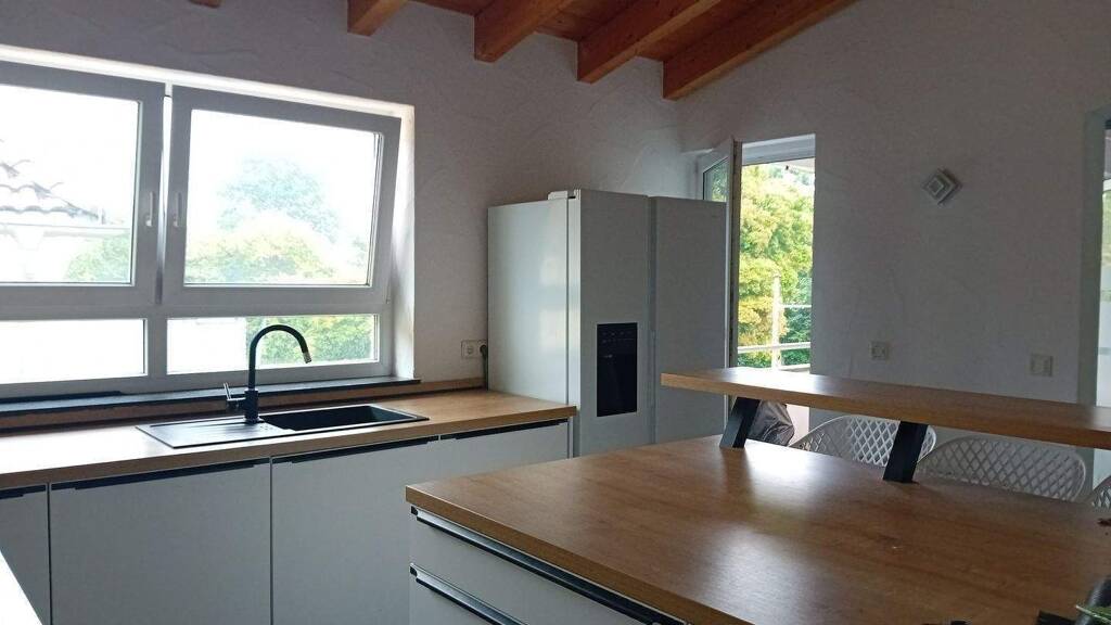 Lagebeschreibung: Diese schöne und großzügige Penthouse-Wohnung (5,5 Zimmer) befindet sich im Dachgeschoss eines Wohn- und Bürogebäudes in ruhiger, innenstadtnaher Lage. Die idyllische Fachwerkstadt verfügt über eine gute Infrastruktur mit Zug-, S- Bahn- und Schnellstraßenanschluss (B29). Die landschaftlich schöne Umgebung bietet sich für Naherholung und Freizeit an.