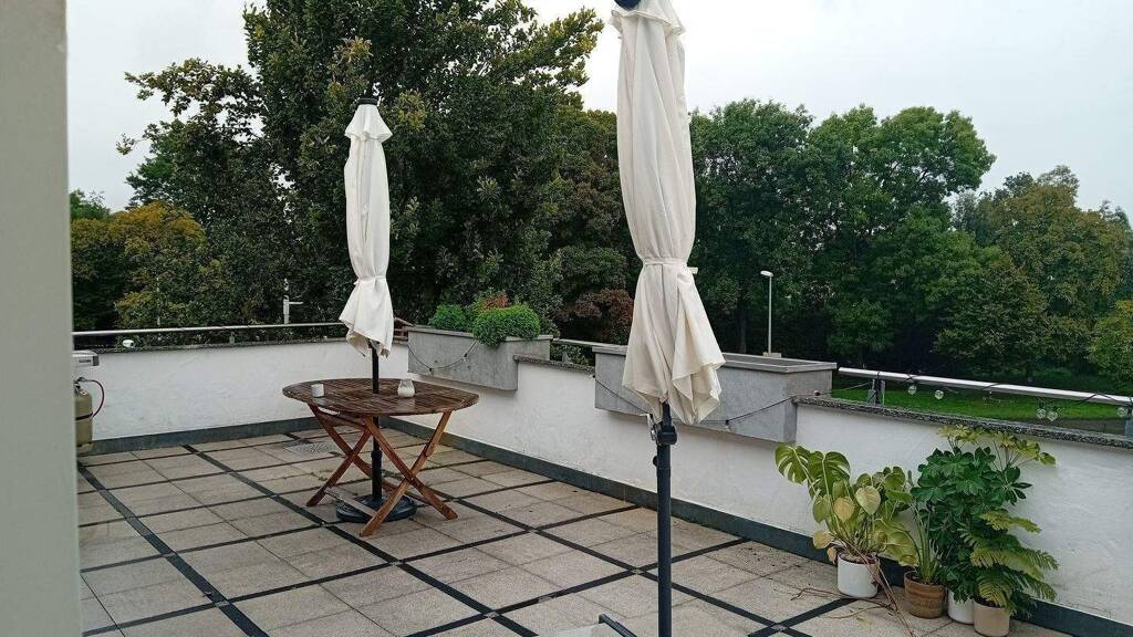 Großzügige, helle und moderne Penthouse-Wohnung. Tageslichtbad, Dachterrasse, Bodenbelag Fliesen, Wände verputzt, Energieversorgung Gas, zusätzlich Kachelofen.