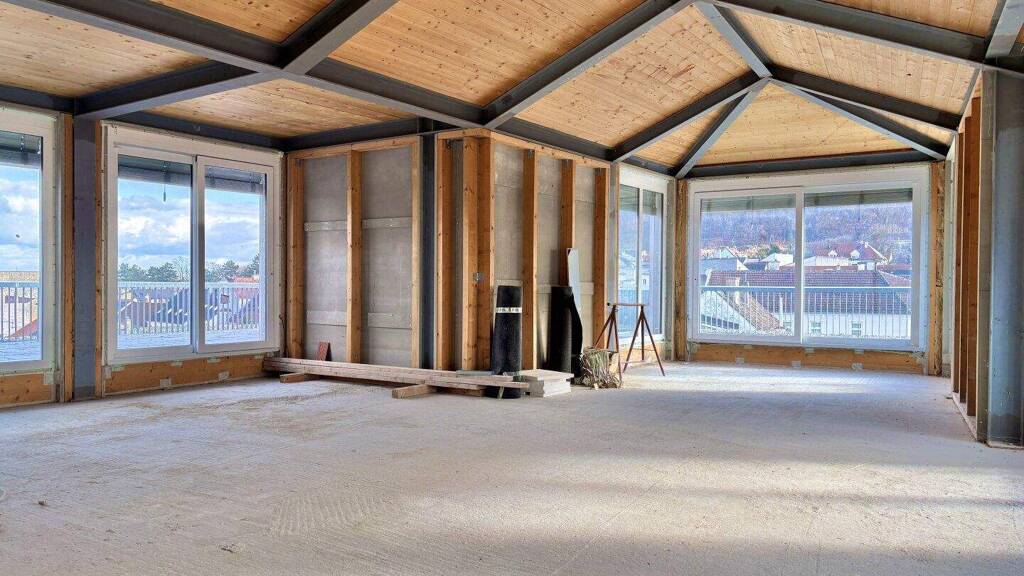 Die Fläche befindet sich im obersten Dachgeschoss und eröffnet einen herrlichen Blick über Hainburg sowie einen direkten Ausblick auf den Schlossberg.