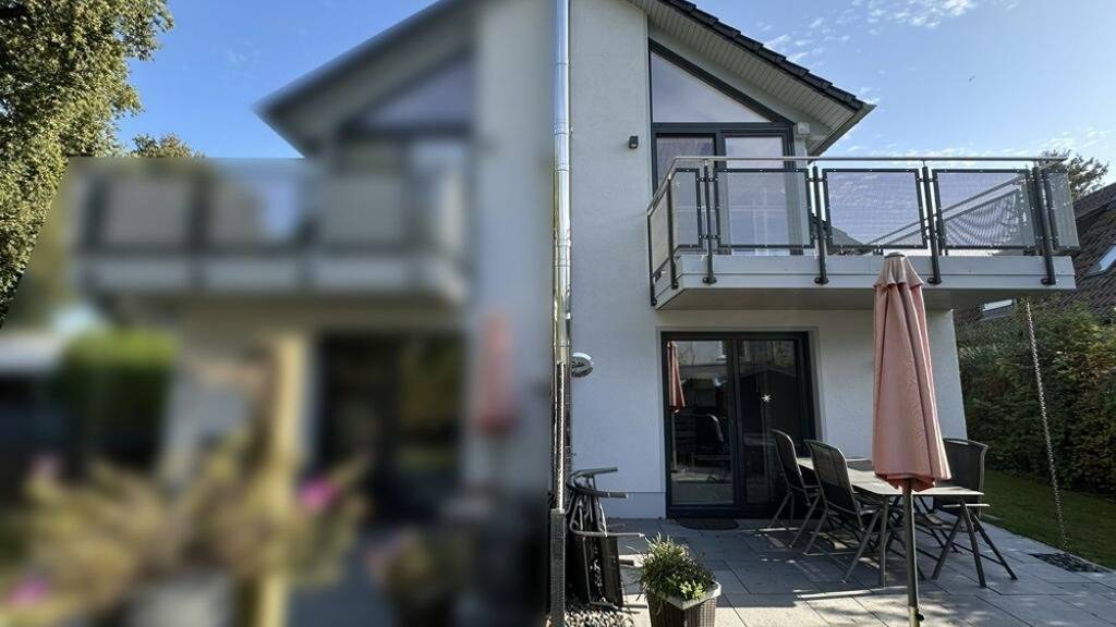 Was Bauweise und Ausstattung angeht, wurde besonderer Wert auf individuelles und zeitgemäßes Design, sowie auf Material- und Verarbeitungsqualität gelegt. Die massiven Außenwände mit einer Stärke von ca. 40 cm bestehen aus 36,5 cm starkem Porenbeton mit Putzfassade, welche in 2024 einen frischen Anstrich erhielt. Auch die ca. 13 m² große Sonnenterrasse wurde im Zuge dessen erneuert. Das Satteldach mit Schleppgauben ist mit einem modernen, anthrazitfarbenen Flächenziegel eingedeckt. Auch die Kunststofffenster sind außenseitig grau beschichtet. Ein schöner Kontrast und Eyecatcher ist die rot gehaltene, teilverglaste Außentür. Alles in Allem ergibt ein modernes und stimmiges Gesamtbild. Den individuellen und sehr zeitgemäßen Charme des Hauses bewirkt nicht nur die Farbwahl der Bauelemente, sondern vorallem das großflächig verglaste Dachgeschoss, was sowohl von innen, als auch von außen beeindruckt. Die ausgeklügelte LED-Beleuchtung an der Außenfassade ist nicht nur praktisch, sondern bietet in den Abendstunden auch einen grandiosen Effekt und setzt die Architektur des Hauses besonders in Szene. Beheizt wird das Haus durch eine Brennwerttherme der Marke Junkers. Zudem ist der gesamte Wohnraum mit einer Fußbodenheizung ausgestattet.