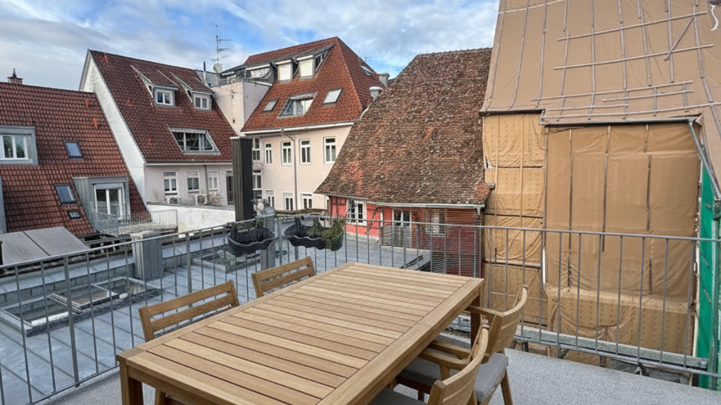 In dieser Wohnung ist man Teil der Radolfzeller Skyline! Die lichtgeflutete Maisonette-Wohnung bietet Ihnen das Privileg, im Herzen der Altstadt zu leben, ohne auf Ruhe und Weite zu verzichten. Exquisit und altersgerecht thront man in der Dachgeschoss-Residenz erhaben über der Stadt - historisches Flair wird hier mit modernster Haustechnik vereint. Ein privater Aufzug führt Sie direkt in Ihr neues Refugium. Während viele Dachobjekte auf Flure verzichten, besticht diese Immobilie durch einen repräsentativen, breiten Flur. Er bietet nicht nur reichlich Platz für eine stilvolle Garderobe oder Ihre persönliche Kunstgalerie, sondern unterstreicht sofort den luxuriösen Loft-Charakter der gesamten Wohnung. Das Herzstück ist der helle und offen gestaltete Wohn- und Essbereich, der durch großzügige Glasflächen und den Zugang zum ersten Balkon besticht. In der offenen Küche mit Kochinsel kann man in Geselligkeit oder im Kreis der Familie kulinarisches zaubern. Die Master-Suite mit Ankleide sowie ein luxuriöses Großraum-Bad bieten Rückzug auf höchstem Niveau. Ein weiteres Zimmer steht den Bewohnern zur individuellen Nutzung zur Verfügung. Ein separates Gäste-WC ist ein wesentliches Komfort-Merkmal, besonders in einer Wohnung, die für Gäste und gesellige Abende ausgelegt ist. Es bewahrt die Privatsphäre im Hauptbadezimmer. Das absolute Highlight: Über die elegante Galerie gelangen Sie auf die spektakuläre Dachterrasse. Von hier aus genießen Sie ein unvergleichliches Panorama über die Dächer der Altstadt bis hin zum glitzernden Bodensee. Ein Tiefgaragenstellplatz in dieser Bestlage komplettiert dieses seltene Angebot. Ein Wohntraum für Individualisten!