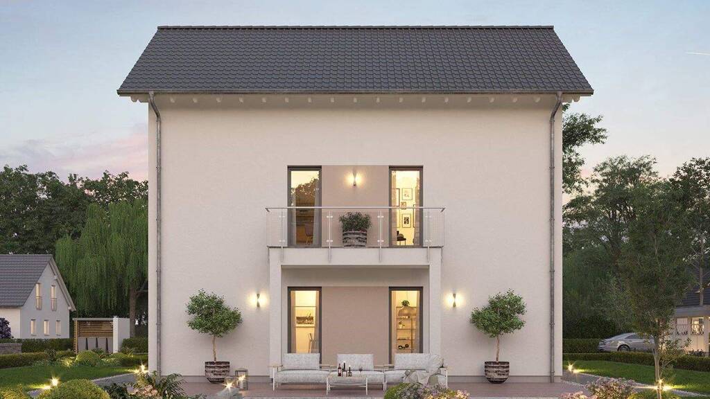 Bei dem Einfamilienhaus LifeStyle 19.01 S lässt sich stilvolles Wohnen auf drei Etagen realisieren. Auf einer Nettogrundfläche von ca. 190 m² überzeugt das Einfamilienhaus mit einer cleveren und durchdachten Raumaufteilung. Im Erdgeschoss bildet der kombinierte Wohn- und Essbereich den Mittelpunkt. In der ersten Etage befinden sich bis zu drei Kinderzimmer mit Bad. Das Elternschlafzimmer mit geräumiger Ankleide und Bad liegt in der obersten Etage unter dem formschönen Satteldach. Ein besonderes Plus für absolute Wellnessmomente ist ein zusätzlicher Wohnbereich mit integrierter Sauna. Durch bodentiefe Fenster werden sämtliche Räume mit Tageslicht versorgt und erzeugen den hellen, freundlichen Charakter des Einfamilienhauses.
