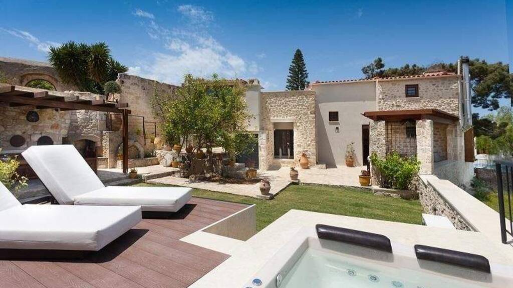 Eingebettet in das historische Dorf Maroulas, nur 8 Kilometer vom lebhaften Zentrum Rethymnos und nur 4 Kilometer von den sonnenverwöhnten Stränden Nordkretas entfernt, ist dieses exquisite Steinhaus ein wahres Juwel traditionellen Charmes und modernen Luxus. Vor der atemberaubenden Kulisse von Meerblick und üppigen Olivenhainen wurde die 143 m² große Residenz mit viel Liebe zum Detail komplett renoviert und verbindet so auf harmonische Weise historische Architektur mit zeitgenössischem Komfort.
